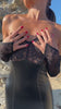 Cette petite robe bustier bi-matière allie parfaitement un voile florale qui orne la poitrine avant de finir avec un wetlook brillant et moulant.